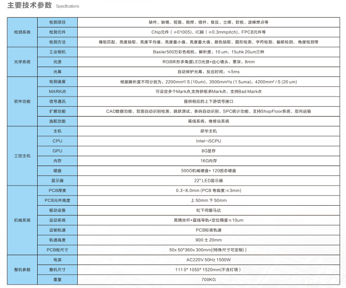 TOP-MV8L在線型AOI 采用德國Basler工業相機,像素高達500萬像素。高景深,低畸變,全像素,定倍解析設計。