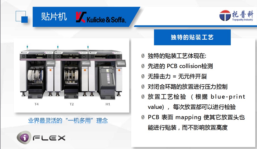 獨特的貼裝工藝,先進的PCB collsion 檢測,無撞擊力=無元件開裂。對閉合路的放置進行壓力控制。放置工藝檢驗(根據 blu-print value),每次放置都可以進行檢驗。PCB表面 mapping 使其它放置頭也能進行貼裝,而不影響放置高度。